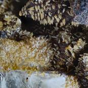 (1)+(2) BB jeweils 4,5 mm - (1) mit Roemerit; (2) mit Roemerit und Szmolznokit