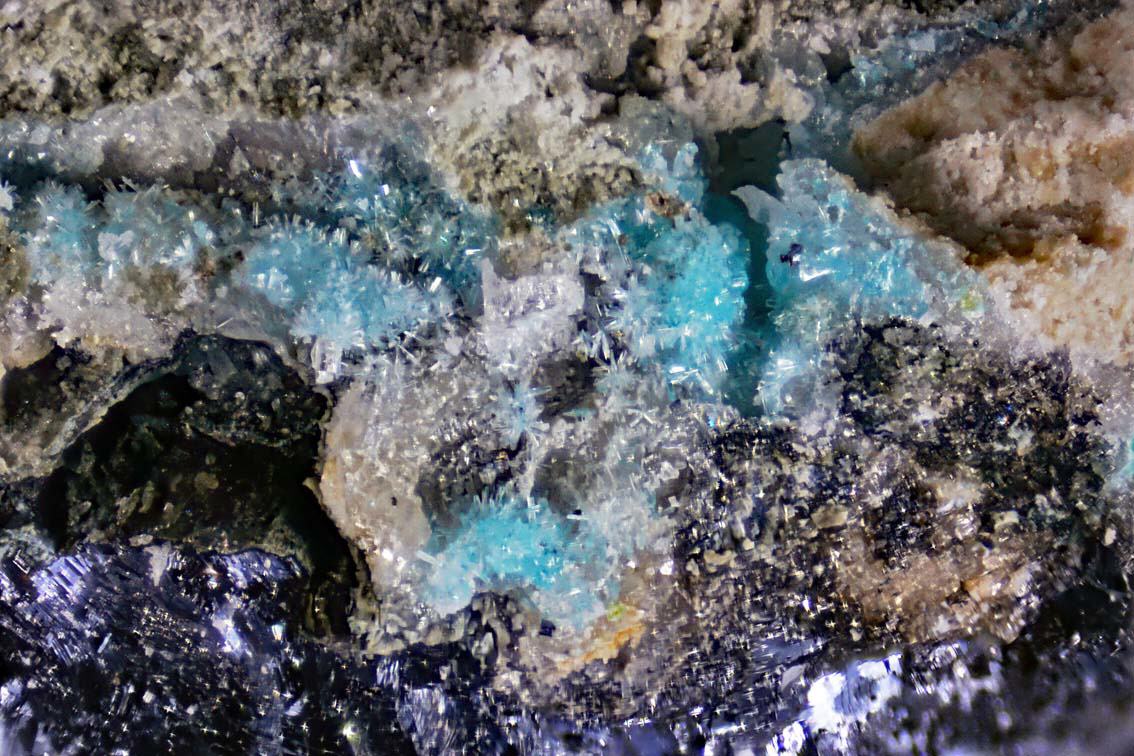 (1) BB 2,5 mm; (2) BB 6,5 mm; (3) BB 4,5 mm - FO von (1-3): Willnauer Gangzug / (4) BB 2,5 mm; (5) BB 2 mm, mit Linarit; (6) BB 2,5 mm, mit Linarit - (4-6) = verschiedene Ansichten derselben Stufe, FO: Barbara; (7) BB 2,5 mm; FO: Barbara