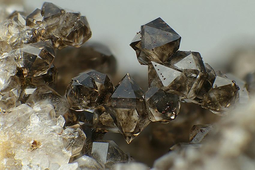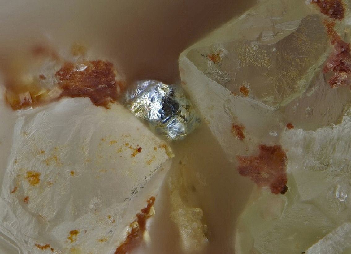 (3) mit Goethit; BB 2,4 mm / (4) auf Limonit; BB 1,8 mm